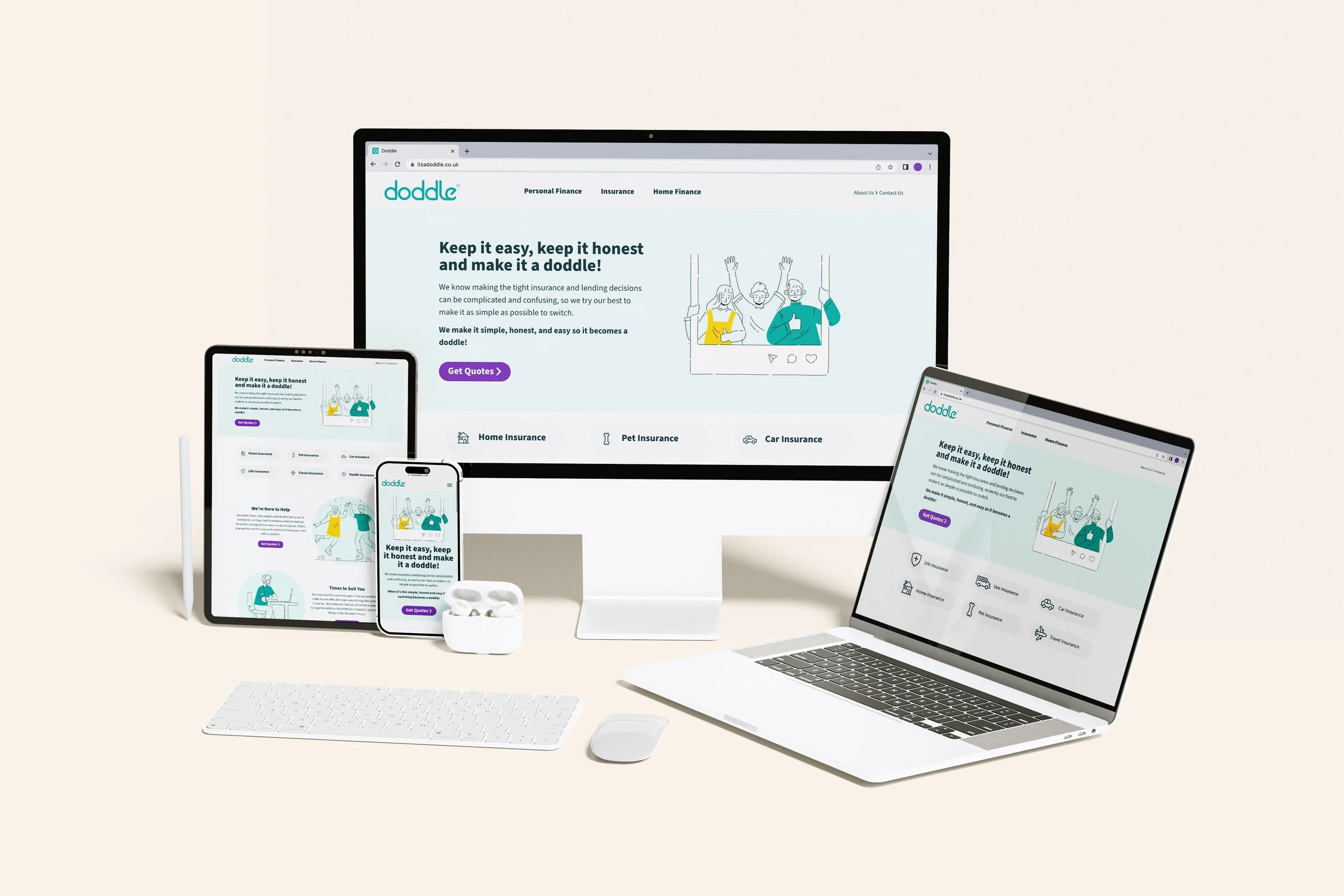 Doddle only had a logo and a handful of colours. The business needed a refreshed identity that matched its promise of being simple to use. The goal was to develop a clearer, friendlier visual direction and define a design style for how the website's pages could look. The new identity needed to support the brand’s growth and help establish clarity across all customer touchpoints from website to advertising to printed materials.